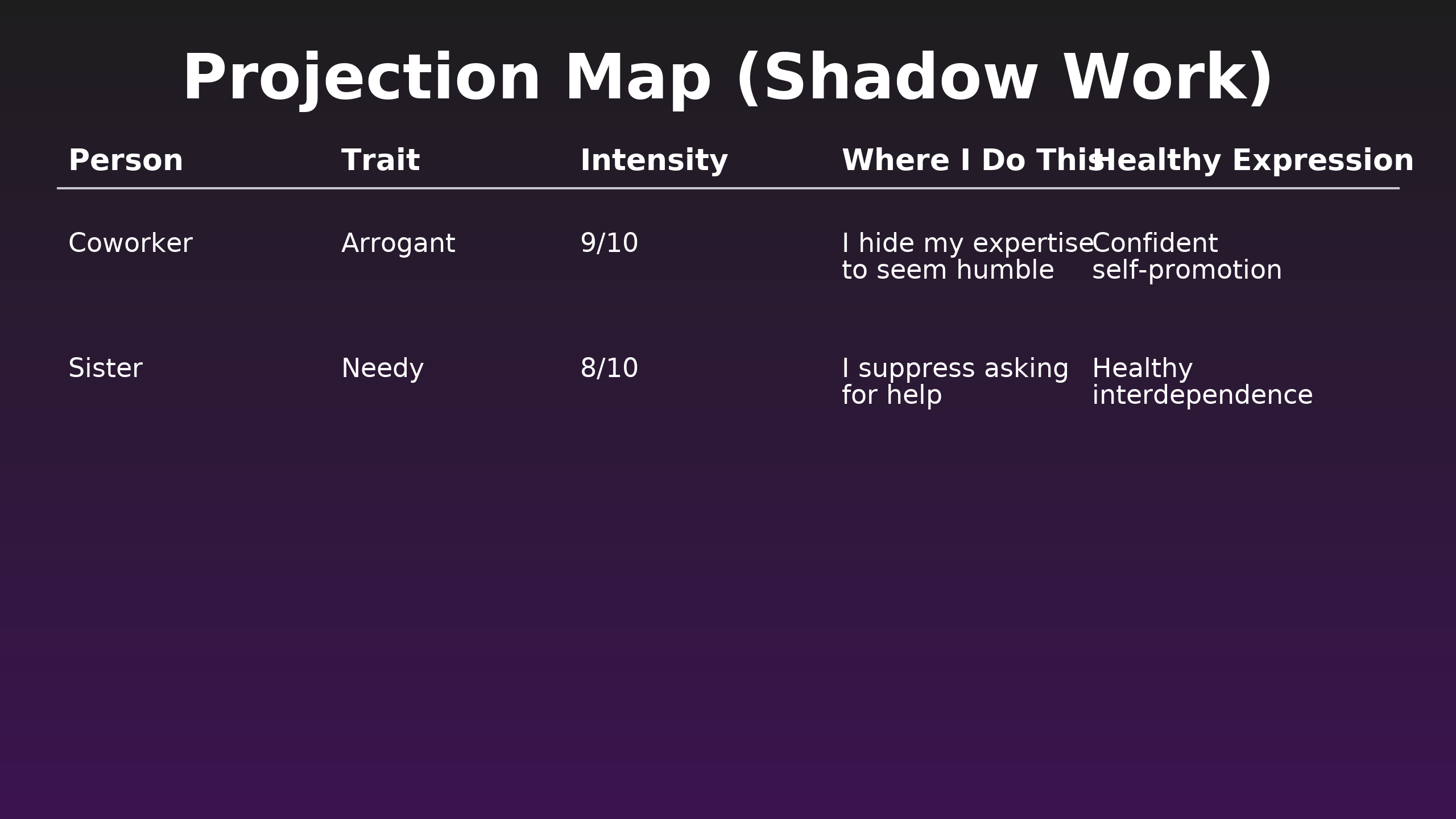 Real example: Sarah realized she was intensely judgmental toward “attention-seeking” people. When she sat with it honestly, she discovered she’d spent her whole childhood being told that wanting attention was selfish and needy. So she’d learned to hide, stay small, and make herself easy—and then she punished anyone who didn’t.